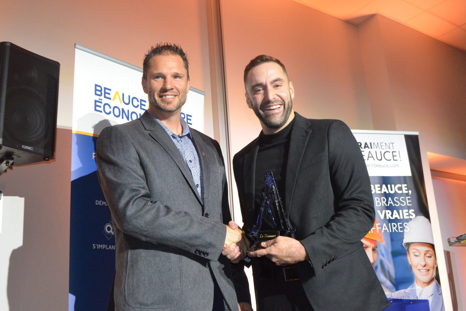 SAINT-JOSEPH. La 26e édition de la Soirée des Sommets a eu lieu le jeudi 23 octobre dernier au Centre Frameco de Saint-Joseph-de-Beauce. L’événement, présenté par Beauce-Centre Économique (BCÉ), a accueilli quelque 225 convives, lesquels ont pu applaudir les six gagnants de la soirée.