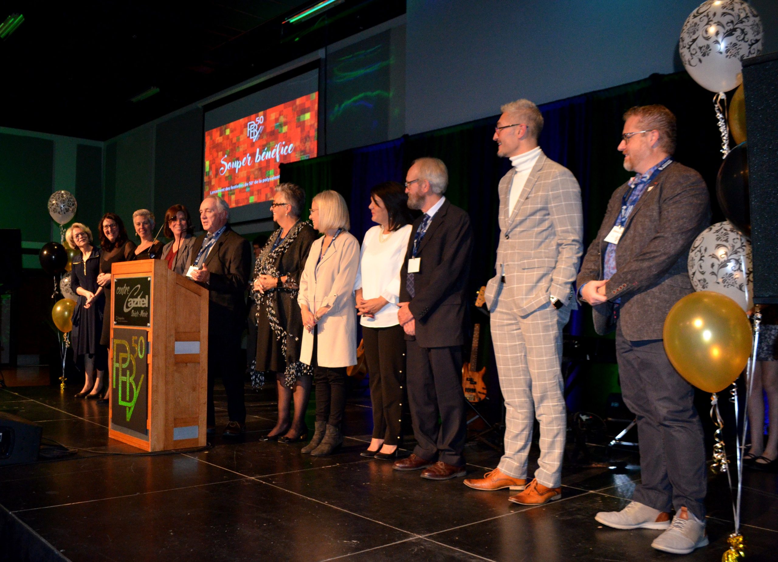 SAINTE-MARIE. Quelque 250 personnes ont participé au souper-bénéfice, tenu le samedi 19 octobre dernier au Centre Caztel de Sainte-Marie, visant à lancer les célébrations du 50e anniversaire de la Polyvalente Benoît-Vachon (PBV). L’activité a permis d’aller chercher environ 83 000 $ pour la fondation Polydon, dont la mission est de venir en aide aux élèves dans le besoin.