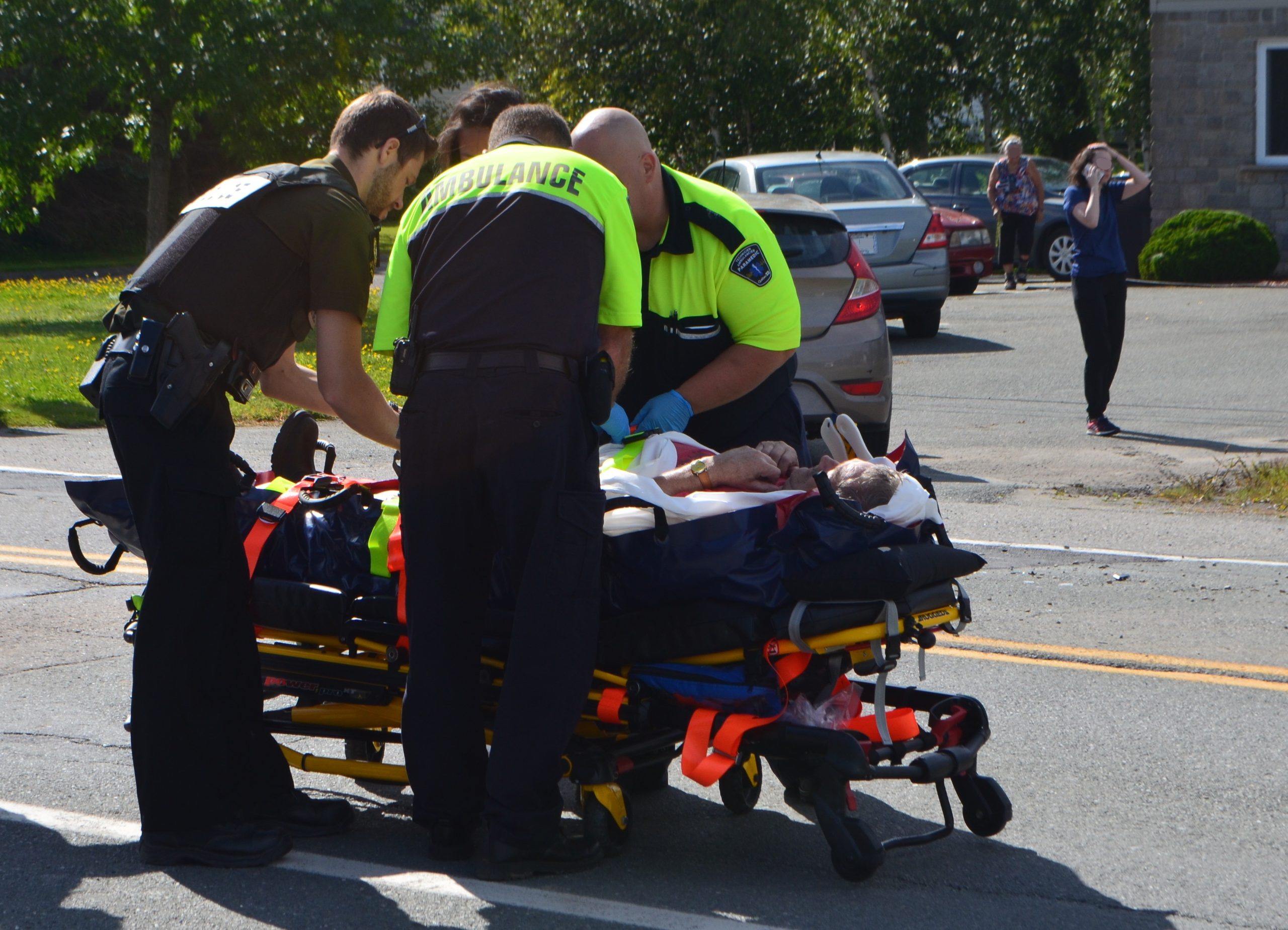 Selon les premières observations, il aurait subi une blessure thoracique qui, par le traumatisme, diminue quelque peu ses capacités respiratoires. Il a été transporté vers l’Hôtel-Dieu de Lévis vers 14 h 45 pour recevoir les soins appropriés.