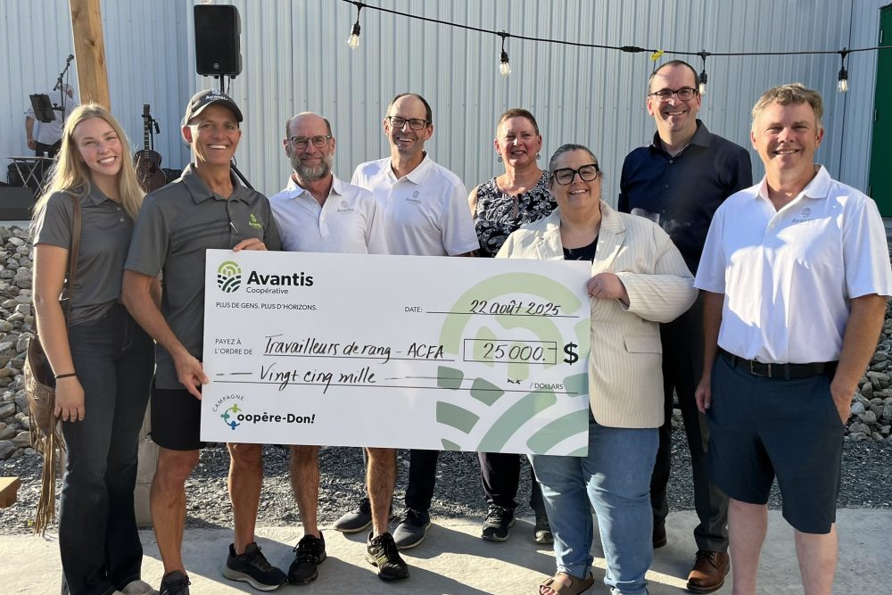 « Nous avons fièrement dépassé notre objectif de 85 000 $. Soutenir nos communautés est au cœur de notre mission et la cause des travailleurs de rang nous est particulièrement chère, en raison des 3000 producteurs agricoles membres propriétaires d’Avantis. Il est essentiel pour nous de faire notre part pour leur santé mentale », a souligné Frédéric Martineau, président d’Avantis Coopérative.