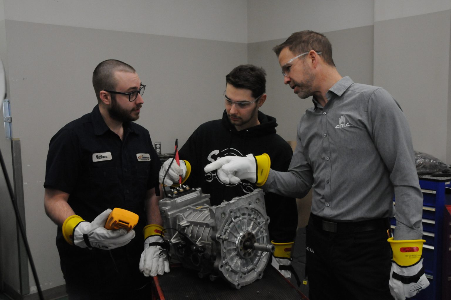 « Pour cette première cohorte, nous avons fait le tour des garages et concessionnaires. Plusieurs intéressés ont levé la main, mais ne pouvaient pas libérer des mécaniciens à temps plein. C’est pourquoi l’AEP se donne 60 % au -CIMIC et 40 % en entreprise », précise Ghislain Roy, qui enseigne ce programme avec -Jean-François -Nadeau et -Vincent -Patry.