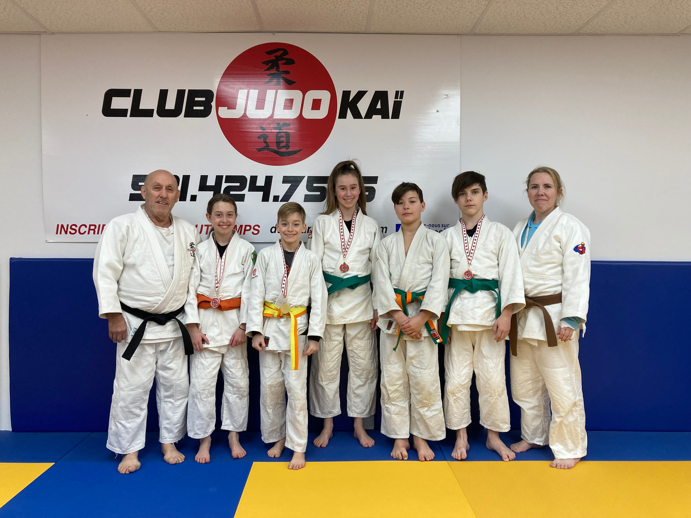 Sur la photo, on reconnait Réjean Lavoie, directeur technique du club, Julia Marcoux, médaillée d’argent dans la catégorie U12, Éliot Mercier avec l’or en U12, Lauralie Marcoux l’argent en U14, Loïk Lavoie-Bégin l’or en U12, Antoine Rancourt avec le bronze en U14 et Stéphanie Lachance chez les vétérans.